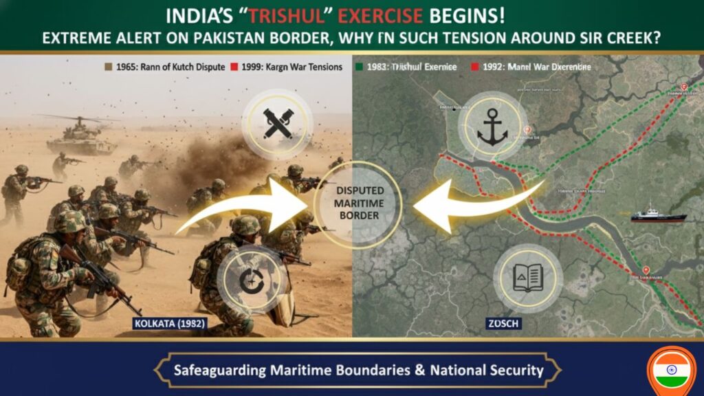 ‘ত্রিশূল ২০২৫’ মহড়ার কেন্দ্রবিন্দু হলো স্যর ক্রিক (Sir Creek) অঞ্চল। এই ৯৬ কিলোমিটার দীর্ঘ জলাভূমিটি ভারতের গুজরাট এবং পাকিস্তানের সিন্ধু প্রদেশের মধ্যে অবস্থিত এবং এটি ভারত ও পাকিস্তানের মধ্যে সবচেয়ে বিতর্কিত সীমান্ত অঞ্চলগুলির মধ্যে অন্যতম।